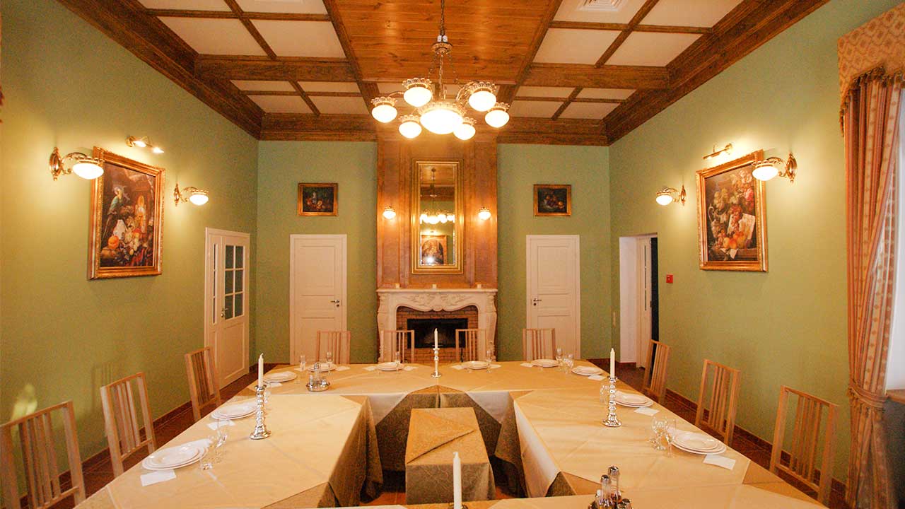 Камерный каминный зал прекрасно подойдет для создания теплой и незабываемой атмосферы Вашего мероприятия как корпоративного, так и семейного! Количество мест: около 40.